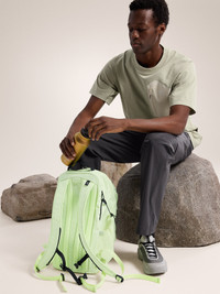 Comfortable, streamlined, highly versatile 26L pack made with recycled materials. Made to expand horizons, the exceptionally versatile Mantis delivers its organization, durability, and balanced carry with a clean, minimalist design and recycled materials. A drawbridge opening allows easy access to the large main compartment, multiple pockets provide intuitive organization, and an internal sleeve carries a hydration reservoir or laptop. The padded back, frame sheet, and aluminum stay combine for a comfortable carry, and adjustable side pockets hold water bottles, windshell, or camera. Full Product Features Technical features - Lightweight Fabric treatment - FC0-DWR (Durable Water Repellent) finish repels moisture Logos & Label configuration - Arc'teryx Bird logo Pack design & Construction - Top grab handle for easy grab-and-go access - Padded back panel with frame sheet and aluminum stay help carry load comfortably Pack dimensions - Mantis 26 Backpack = Length: 47.5cm, Width: 27.5cm, Depth: 25cm Pack loading & Closure configuration - Spacious panel-load main compartment Pack pocket configuration - Stretch mesh external side pockets carry water bottles or reusable coffee mugs - Internal security pocket with key clip - Top lid pocket - Inner sleeve for a laptop or hydration bladder - Two front zipper pockets Pack suspension configuration - Adjustable sternum strap Sustainability - Shell - bluesign® approved material, recycled content - Lining - dope dyed some colours, recycled content - PFAS (Per- and polyfluoroalkyl substances) Compliant Materials - Body: 600d DTY rePET plain weave, w/FC0 DWR - 100% Polyester - Origin of fabric: TAIWAN, CHINA - Origin of dyeing: TAIWAN, CHINA - Origin of Manufacture: VIETNAM - May release plastic microfibres into the environment when washing