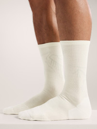 Thermoregulation and targeted cushioning – our all-mountain Merino-blend sock. Light, soft, and breathable, these socks give you targeted cushioning, technical performance, and natural comfort on runs, hikes, and approaches. Ultra-fine yarns blend Merino wool – a material known for natural odour resistance and thermal management – with nylon for added durability. The construction delivers exceptional fit, support, aligns with the fit of our shoes, and helps prevent slipping and bunching. The mid-height collar provides protection and helps seal out trail debris. Full Product Features Technical features - Breathable - Lightweight - Durable Construction - Ultra fine Merino wool is known for soft comfort, natural temperature regulation and odour resistance - The tall collar helps seal out grit and trail debris - 200-needle Merino fibres are plaited with nylon to combine wool’s natural performance with added durability - Targeted cushioning, mesh zones, and ribbed arch support provide comfort and breathability Logos & Label configuration - Arc'teryx word logo - Arc'teryx Bird logo Sustainability - Body - non-mulesed wool - PFAS (Per- and polyfluoroalkyl substances) Compliant Materials - Body: Nylon wool blend - 48% Nylon, 48% Wool, 4% Elastane
