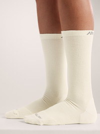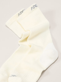 Thermoregulation and targeted cushioning – our all-mountain Merino-blend sock. Light, soft, and breathable, these socks give you targeted cushioning, technical performance, and natural comfort on runs, hikes, and approaches. Ultra-fine yarns blend Merino wool – a material known for natural odour resistance and thermal management – with nylon for added durability. The construction delivers exceptional fit, support, aligns with the fit of our shoes, and helps prevent slipping and bunching. The mid-height collar provides protection and helps seal out trail debris. Full Product Features Technical features - Breathable - Lightweight - Durable Construction - Ultra fine Merino wool is known for soft comfort, natural temperature regulation and odour resistance - The tall collar helps seal out grit and trail debris - 200-needle Merino fibres are plaited with nylon to combine wool’s natural performance with added durability - Targeted cushioning, mesh zones, and ribbed arch support provide comfort and breathability Logos & Label configuration - Arc'teryx word logo Sustainability - Body - non-mulesed wool - PFAS (Per- and polyfluoroalkyl substances) Compliant Materials - Body: Nylon wool blend - 48% Nylon, 48% Wool, 4% Elastane