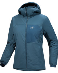 Breathable warmth for climbing and high-output mountain activities. Breathable and warm, the Proton Hoody is the choice for climbing and dynamic mountain activities in cold conditions. The 100% recycled Coreloft™ Compact insulation is light and packable and performs even if wet. The outer is a durable, air-permeable Fortius Air 20 softshell. Working together, the breathable materials allow airflow that speeds vapour transfer and regulates temperature. An insulated StormHood extends coverage, and the articulated design is patterned to move. What's been updated: A PFAS-free durable water repellent treatment and Coreloft™ Compact synthetic insulation for lightweight, breathable warmth. Need a lighter option? Try the Proton SL Hoody. Full Product Features Technical features - Moisture-resistant outer face fabric - Breathable - Lightweight - Wind resistant - Air permeable Construction - Fortius™ Air 20 face fabric effectively balances air permeability and weather resistance with lightweight durability and stretch - Coreloft™ Compact insulation regulates temperature, performs if wet, and is made from 100% recycled materials - Breathable 20d plain weave Toray liner allows airflow and is made with recycled content Cuff & Sleeves configuration - Knit cuffs add comfort and style Design & Fit - Fitted, with articulated patterning for mobility and comfort - Garment Centre Back Length: Size S is 27"/68cm - Varies by size Fabric treatment - FC0 DWR (Durable Water Repellent) finish repels moisture and is PFAS-free Hem configuration - Dual lower hem adjusters Hood configuration - 60gsm PrimaLoft® insulated helmet-compatible hood provides additional warmth Pocket configuration - Two hand pockets with zippers - Chest pocket Sustainability - Contains materials that meet the bluesign® criteria - Body - bluesign® approved material - Insulation - bluesign® approved material, recycled content - Lining - bluesign® approved material, recycled content - PFAS (Per- and polyfluoroalkyl substances) Compliant Zippers & Fly configuration - No Slip Zip™ prevents inadvertent opening Materials - Synthetic Insulation: Coreloft™ Compact, 80gsm - 100% Polyester - Lining: 20d recycled nylon plain weave, 42gsm, w/ Cire - 100% Nylon - Body: Recycled 20d nylon plain weave weft stretch FC0 DWR, 58gsm - 88% Nylon, 12% Elastane - Origin of fabric: TAIWAN - Origin of dyeing: TAIWAN - May release plastic microfibres into the environment when washing