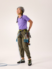 A recycled polyester, high-hip climbing tee with UPF 40 protection. The Rula T-Shirt is made for those effortless climbing days when everything connects. Light, breathable, and designed to move with you, it brings comfort and ease to bouldering and sport-climbing sessions. The recycled polyester knit is soft on skin, wicks moisture, and delivers UPF 40 sun protection for long days on exposed rock. A flattering fit, ribbed neckline, and high-hip length keep it clean, minimal, and ready for the next boulder or pitch. Full Product Features Technical features - Moisture-wicking - Breathable Construction - Recycled polyester knit is soft, breathable, and moisture-wicking Neckline configuration - Ribbed neckband for stretch and comfort Patterning - Gusseted underarms for mobility and comfort Sustainability - Recycled content - This article was treated with an anti-odour biocidal product (Silvadur™ ) - PFAS (Per- and polyfluoroalkyl substances) Compliant UPF rating - 40 Materials - Body: Circular Knit Jersey, 156gsm, Silvadur - 100% Polyester - Origin of fabric: JAPAN - Origin of dyeing: JAPAN - May release plastic microfibres into the environment when washing