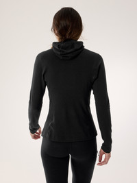 Merino-blend base layer for mid-output activities across arrange of temperatures. All-season, all-mountain base layer. The 240gsm Merino wool fibres are chosen for thermoregulation, softness, and natural odour-resistance. The fit is streamlined for easy layering and articulated for freedom of movement. The hood fits under a helmet, has a ponytail port, and scrunches down to work as a neck gaiter or balaclava. Full Product Features Technical Features - Breathable - Lightweight - Natural merino wool has anti–odour properties - Cold weather comfort - Warm and comfortable Construction - Ultra fine Merino wool is known for soft comfort, natural temperature regulation, moisture management, and odour resistance - Merrow and flatlock seam constructions reduce bulk and enhance comfort - Binding at back of collar for a smooth, comfortable finish Design & Fit - Fitted for efficient fabric performance, easy layering Hood Configuration - Low-profile hood with ponytail port adds warmth, fits comfortably under a helmet, and can be worn as a balaclava or neck gaiter Patterning - Articulated patterning for unrestricted mobility Sustainability - Wool is sourced from humanely raised, non-mulesed sheep - RWS (Responsible Wool Standard) - The wool in this product is 100% Responsible Wool Standard (RWS) certified by IDFL (No.TE-99950273) - PFAS (Per- and polyfluoroalkyl substances) Compliant Materials - Body: Merino Lycra Jersey, 18.5mn, 240gsm - 95% Wool, 5% Elastane - Origin of fabric: NEW ZEALAND - Origin of dying: NEW ZEALAND