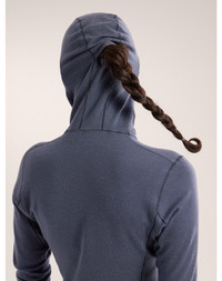 Merino-blend base layer for mid-output activities across arrange of temperatures. All-season, all-mountain base layer. The 240gsm Merino wool fibres are chosen for thermoregulation, softness, and natural odour-resistance. The fit is streamlined for easy layering and articulated for freedom of movement. The hood fits under a helmet, has a ponytail port, and scrunches down to work as a neck gaiter or balaclava. Full Product Features Technical Features - Breathable - Lightweight - Natural merino wool has anti–odour properties - Cold weather comfort - Warm and comfortable Construction - Ultra fine Merino wool is known for soft comfort, natural temperature regulation, moisture management, and odour resistance - Merrow and flatlock seam constructions reduce bulk and enhance comfort - Binding at back of collar for a smooth, comfortable finish Design & Fit - Fitted for efficient fabric performance, easy layering Hood Configuration - Low-profile hood with ponytail port adds warmth, fits comfortably under a helmet, and can be worn as a balaclava or neck gaiter Patterning - Articulated patterning for unrestricted mobility Sustainability - Wool is sourced from humanely raised, non-mulesed sheep - RWS (Responsible Wool Standard) - The wool in this product is 100% Responsible Wool Standard (RWS) certified by IDFL (No.TE-99950273) - PFAS (Per- and polyfluoroalkyl substances) Compliant Materials - Body: Merino Lycra Jersey, 18.5mn, 240gsm - 95% Wool, 5% Elastane - Origin of fabric: NEW ZEALAND - Origin of dying: NEW ZEALAND