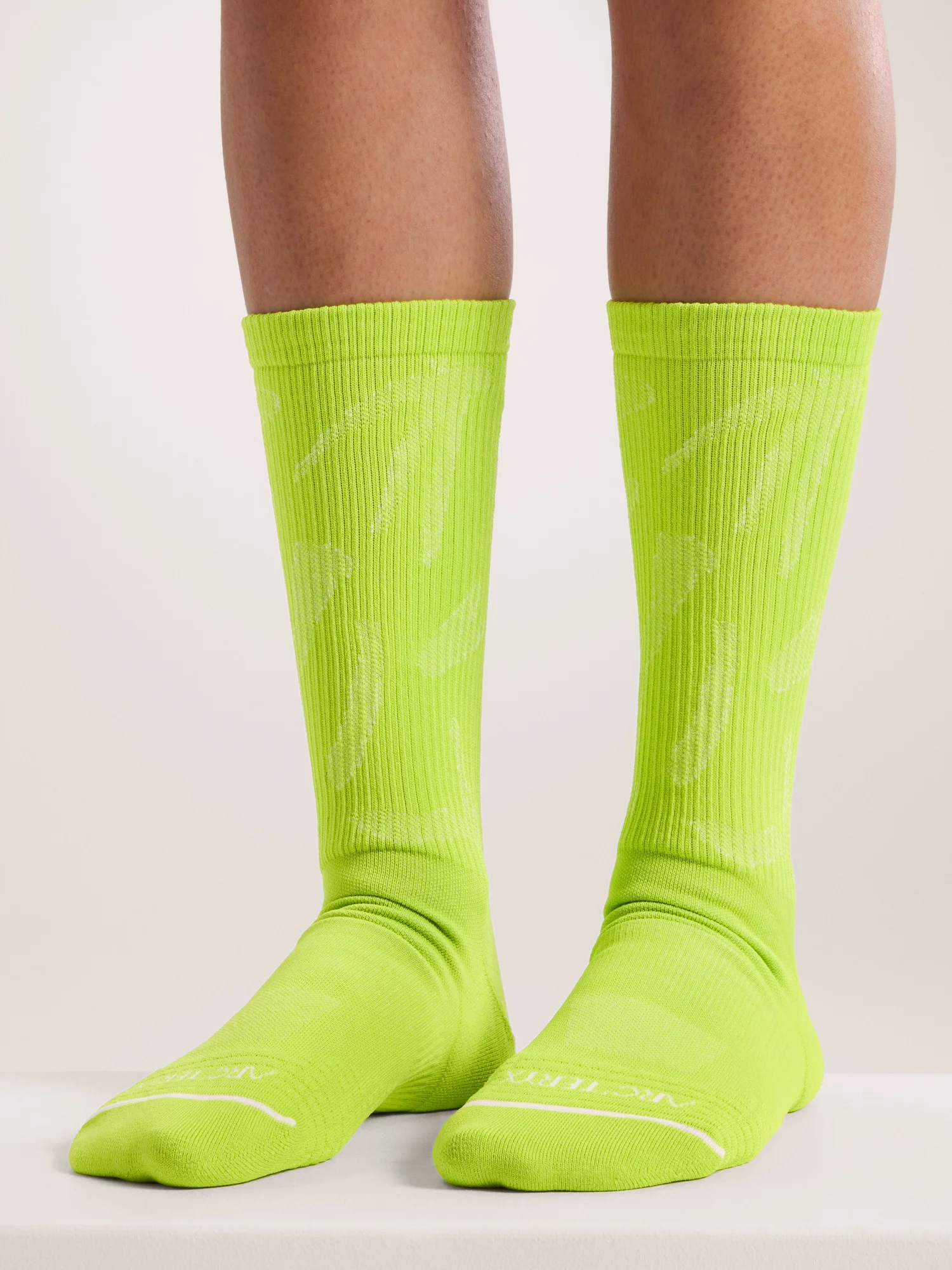 Focused cushioning, breathability, and support in an all-mountain mid-height sock. Run, hike, see what’s out there – this all-mountain Grotto print sock is made from a blend of performance yarns for comfort, temperature management, and climate control while you're on the move. Designed for durability and performance, it has reinforced cushioning in high-friction areas and a targeted grid construction at the arch for enhanced breathability and added support. Integrated thermoregulation technology keeps you in the comfort zone, and a mid-height collar helps keep debris out. Full Product Features Technical features - Breathable Construction - Reinforced cushioning in high friction areas, with targeted grid construction at the arch for breathable comfort and added support - Made from stretch fibres and wicking yarns for technical performance - Yarns have integrated thermoregulation technology for comfort and climate control Design & Fit - Ergonomic design fits the foot and minimizes slipping - Mid-height collar helps keep out grit and trail debris Sustainability - PFAS (Per- and polyfluoroalkyl substances) Compliant Materials - Body: Polyester nylon blend - 71% Polyester, 26% Nylon, 3% Elastane