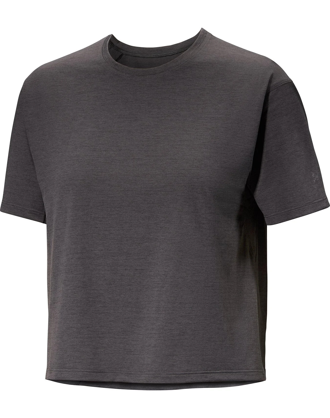 All-mountain technical crop tee providing comfort, airflow, and moisture management. Clean aesthetic, advanced materials, outstanding performance – the versatile Taema’s comfort frees you to get outside and embrace the experience. Made from Phasic™ LT, a performance polyester, it’s breathable, light, and soft. Articulated patterning gives you freedom to move, the seam construction reduces bulk and increases comfort, and a Durable Anti Odour finish keeps things fresh. Crafted at a Fair Trade Certified facility as part of our commitment to transition 80% of Arc’teryx products to fair trade certification by 2025. Full Product Features Technical Features - Moisture-wicking - Breathable - Lightweight Construction - Merrow stitch seam construction reduces seam size and irritation - Phasic™ LT has excellent moisture management and next-to-skin feel, designed for comfort in a range of temperatures Cuff & Sleeves Configuration - Short sleeves Design & Fit - Cropped length design - Relaxed fit for comfort and easy layering Fabric Treatment - DAO™ finish (Durable Anti Odour) - FC0-DWR (Durable Water Repellent) finish repels moisture Neckline Configuration - Crew neck Patterning - Gusseted underarms for mobility and comfort Sustainability - Contains raw materials made with at least 30% portion of recycled content Materials - Phasic™ LT with DAO™ - 100% recycled polyester - French Regulation: AGEC Law - Article 13 - Origin of fabric: JAPAN - Origin of dying: JAPAN - May release plastic microfibres into the environment when washing
