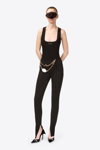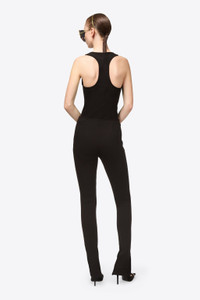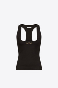 Compact ponte jersey racerback tank top featuring 'AREA' crystal nameplate. Available in Black & Burgundy. - Made in Italy - 67% Rayon, 28% Nylon, 5% Elastane - Dry Clean Only - Model is 5'10.5" and wears a size S