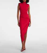Named after the iconic New York nightclub, Area takes the glamour of party dressing in a fresh direction. This midi dress is tailored to an asymmetric silhouette and features padded shoulders and elegant draping finished with a dazzling embellishment. Product Details - Material: 95% polyester, 5% elastane - Care instructions: dry clean - Made in China - Designer color name: Wine Red - Item color: red - Lining: 95% polyester, 5% elastane - Collar: turtleneck - Shoulder pads - Closure: concealed zipped back - Item number: P01099652 Size & Fit - True to size - Shoulder pad inserts - Fitted - Stretchy fabric - The model seen in the picture is 178cm-5'10" and wearing a size XS
