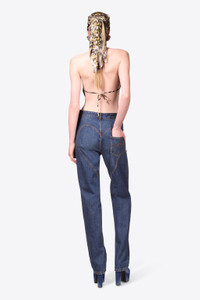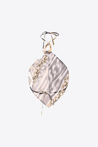Chain printed handkerchief top featuring crystal link embellishment and self tie at neck and back. Available in Multi. - 51% Eco Viscose, 49% Viscose - Dry Clean Only - Model is 5'11" and wears a size XS/S
