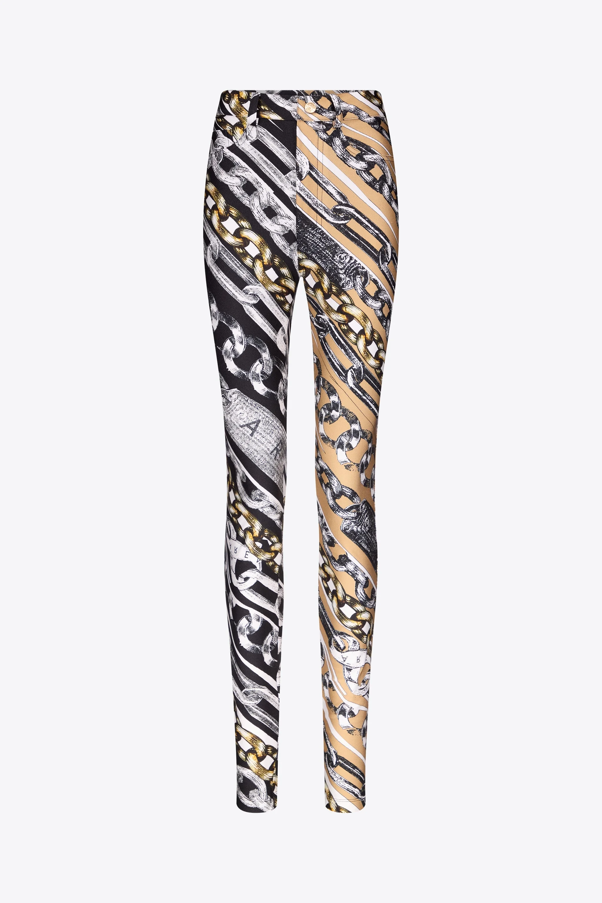 Chain printed lycra leggings feature front zip closure and ankle zippers. Available in Multi. - Made in Italy - 80% Polyamide, 20% Elastane - Dry Clean Only - Model is 5'11" and wears a size S