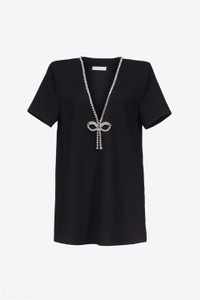 CRYSTAL BOW V-NECK T-SHIRT DRESS