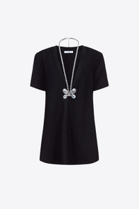 CRYSTAL BUTTERFLY V-NECK T-SHIRT DRESS