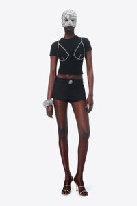 Wool suiting shorts featuring crystal cluster front button. Available in Charcoal. - 99% Virgin Wool 1% Lycra; Pocketing: 100% Viscose - Model is 5'10 and wears a size US 2 - Dry clean only