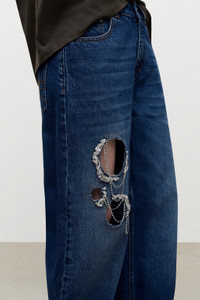 CRYSTAL CHAIN CUTOUT RELAXED JEAN