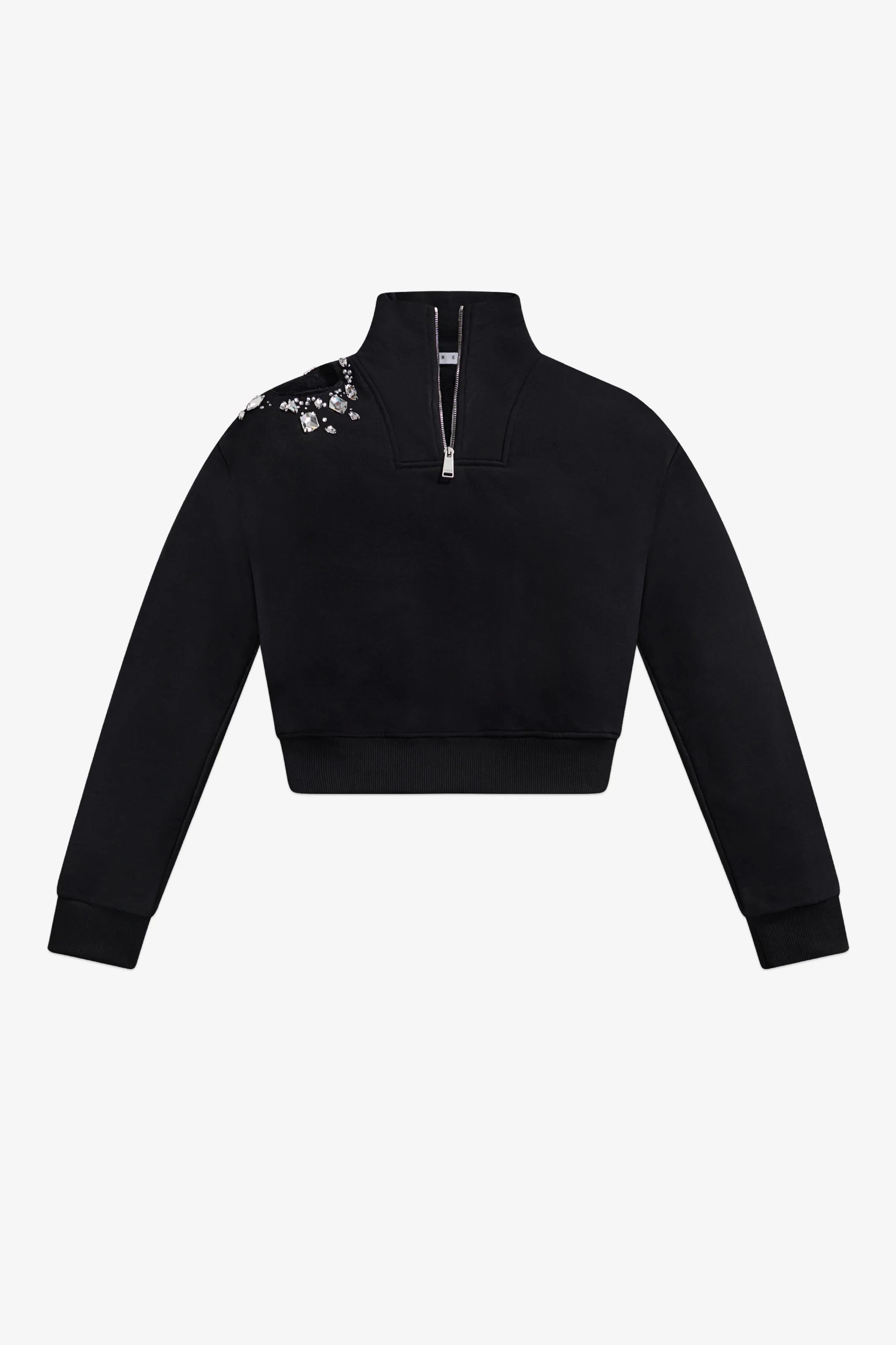 CRYSTAL CLUSTER CUTOUT QUARTER ZIP SWEATSHIRT