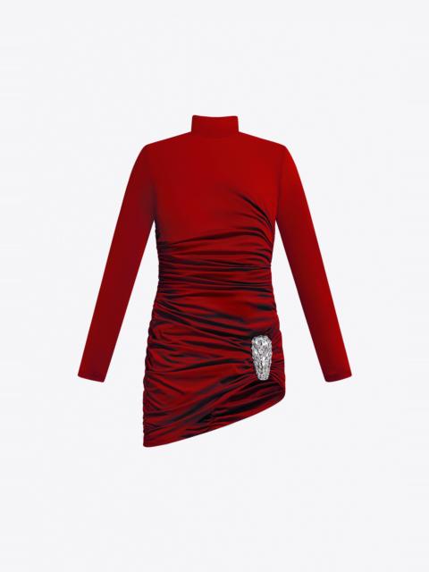 CRYSTAL CLUSTER DRAPED LONG SLEEVE MINI DRESS