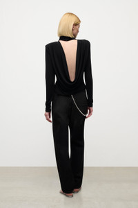 CRYSTAL CLUSTER DRAPED LONG SLEEVE OPEN BACK TOP