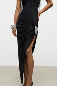 CRYSTAL CLUSTER DRAPED MIDI DRESS