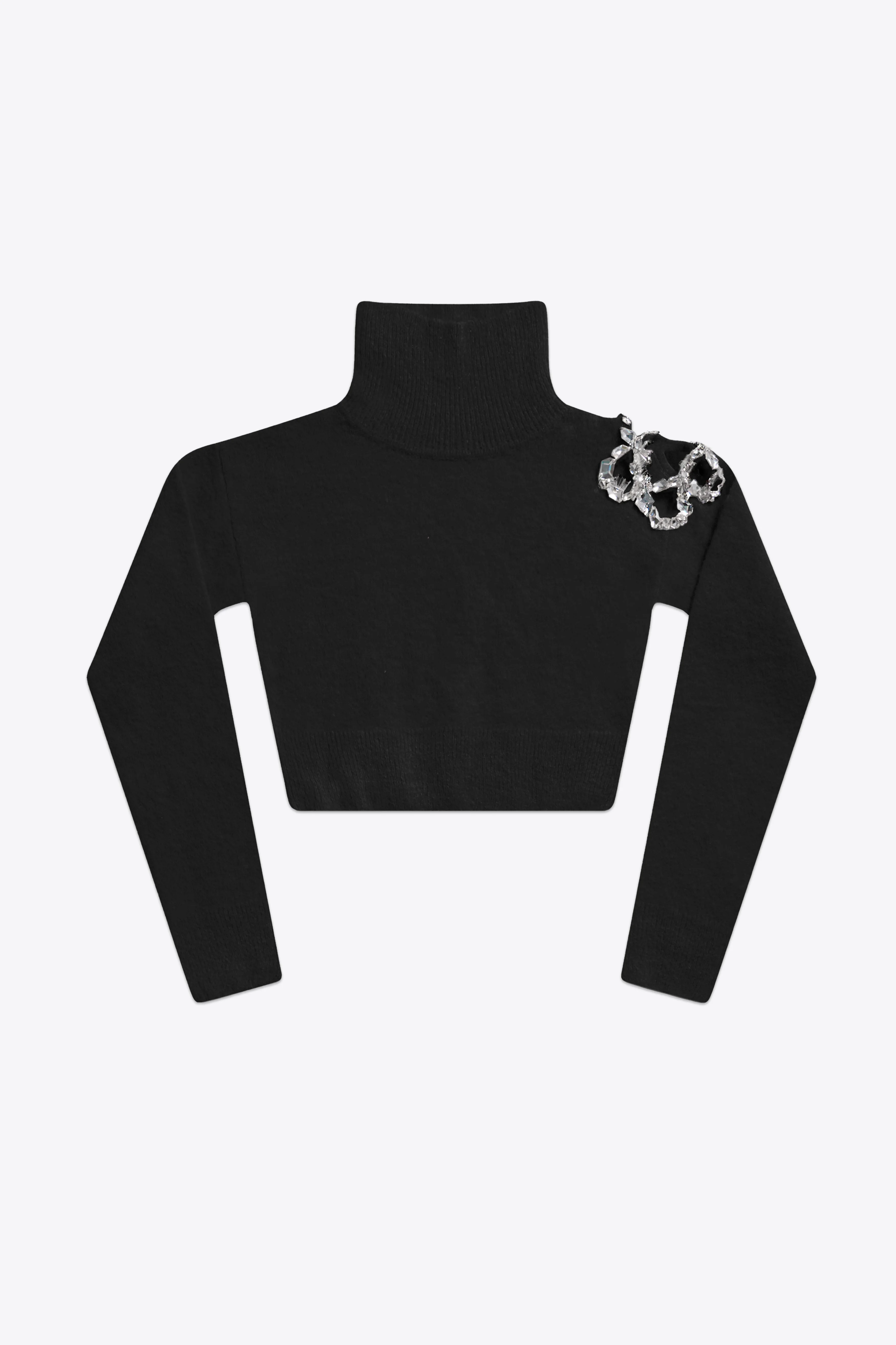 CRYSTAL CLUSTER FLOWER CROPPED TURTLENECK SWEATER