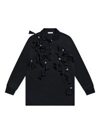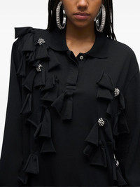crystal-embellished bow long-sleeve dress Highlights - Black - Crystal embellishment - Bow detail - Long sleeves - Polo collar - Button fastening Made in Italy Composition Cotton 100%