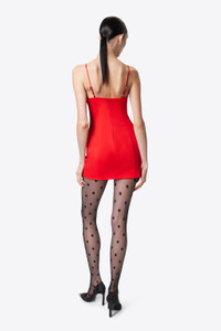 Wool Suiting mini dress featuring sculptured crystal embellished cups, adjustable straps and hidden back zipper. Available in Scarlet and Black. - Shell: 98% Wool, 2% Elastane Lining: 100% Viscose - Dry Clean Only - Model is 5'11" and wears a size US 2