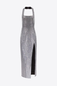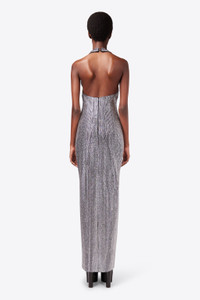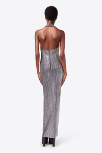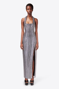CRYSTAL EMBELLISHED HALTER SLIT GOWN