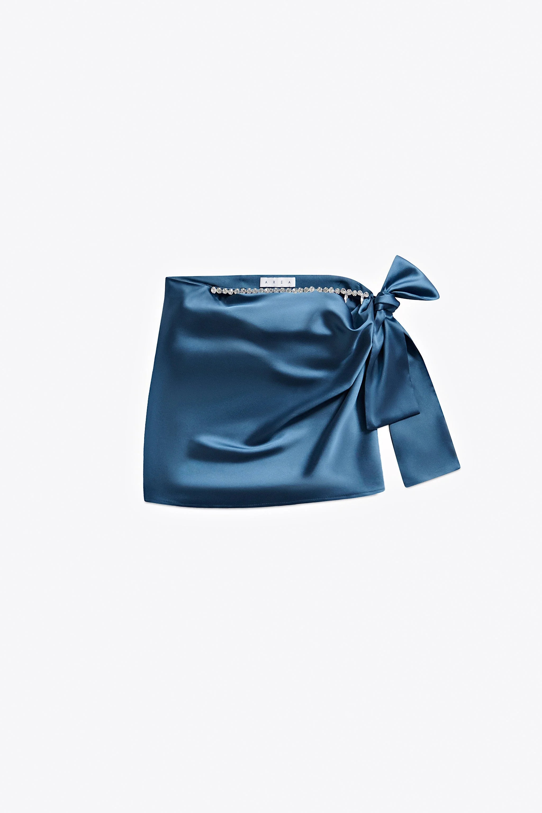 CRYSTAL EMBELLISHED SATIN MINI SKIRT