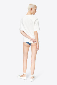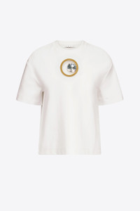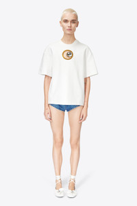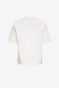 Compact jersey t-shirt with crystal eyelet detail at center front. Available in Off White & Black. - 67% Rayon, 28% Nylon, 5% Elastan - Dry Clean Only - Model is 5'9" and wears a size S