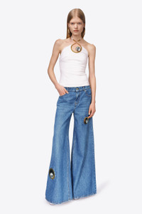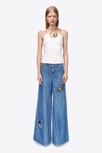 CRYSTAL EYELET WIDE LEG JEAN