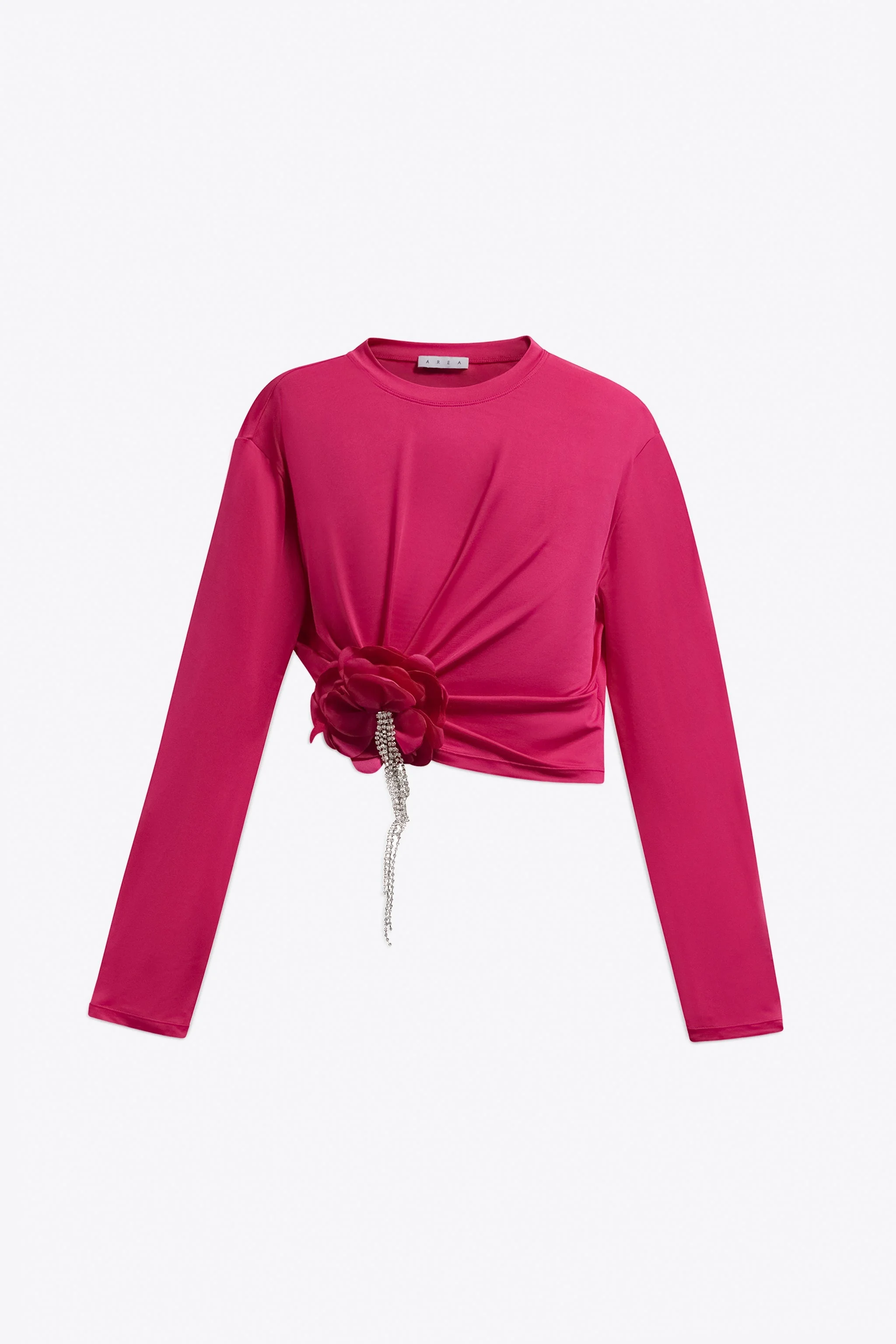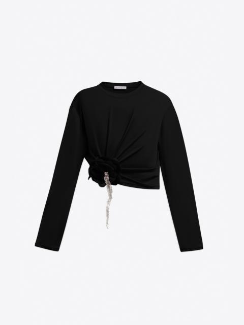 CRYSTAL FLOWER DRAPED LONG SLEEVE TOP