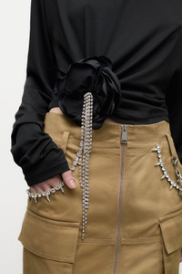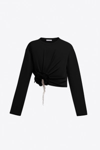 CRYSTAL FLOWER DRAPED LONG SLEEVE TOP