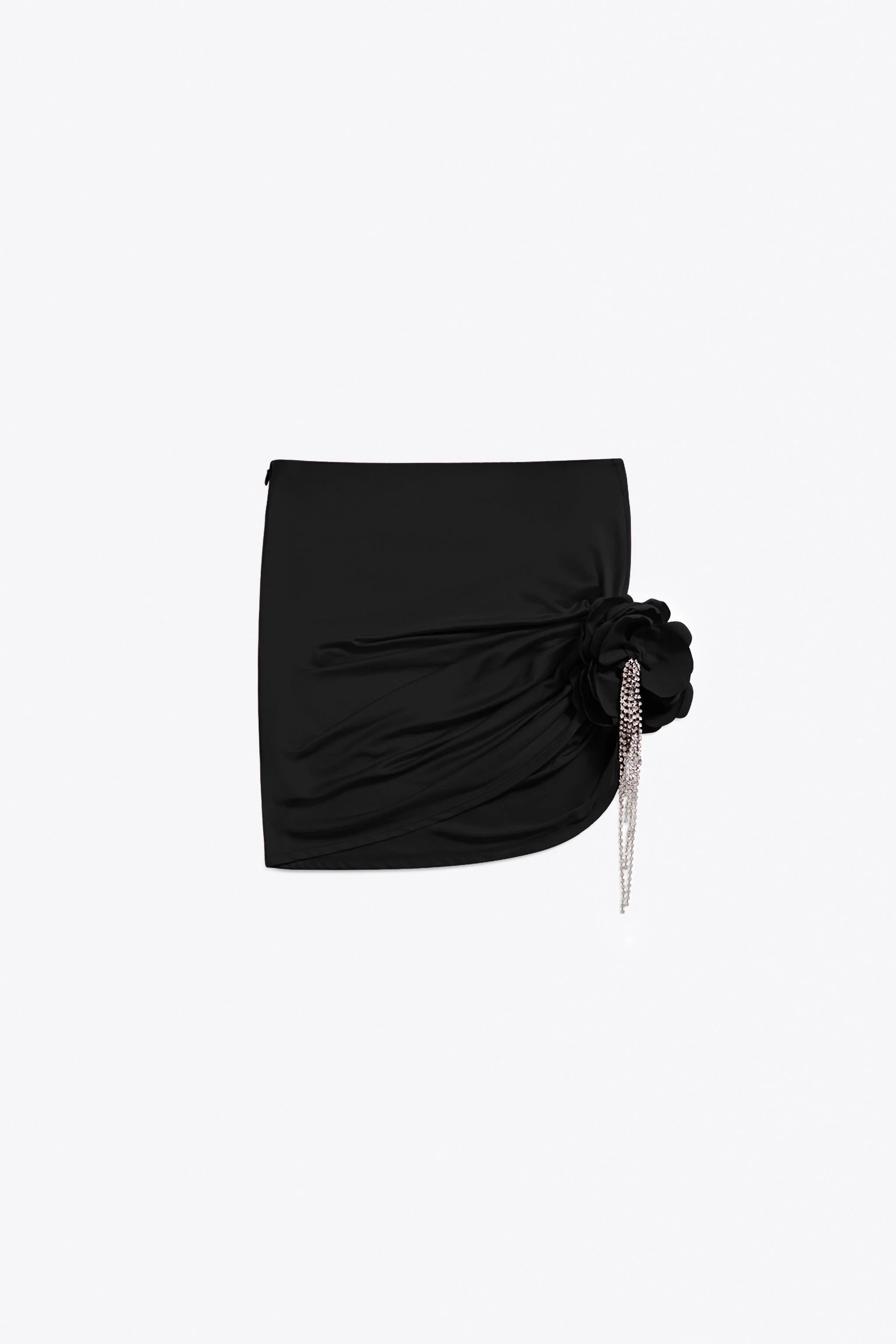 CRYSTAL FLOWER DRAPED MINI SKIRT
