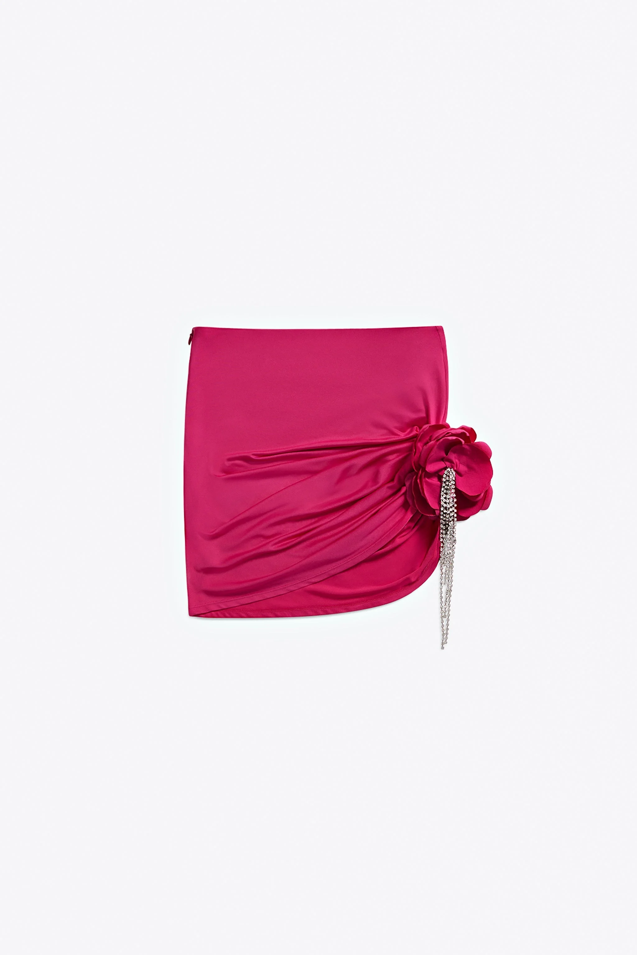 CRYSTAL FLOWER DRAPED MINI SKIRT