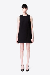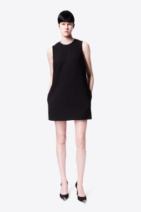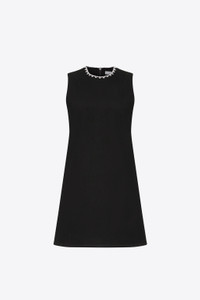 Compact ponte jersey sleeveless mini dress features crystal trim heart cutout back and side pockets. Available in Black, Powder Pink and White. - 67% Rayon, 28% Nylon, 5% Elastane - Model is 5'10 and wears a size S - Dry clean only