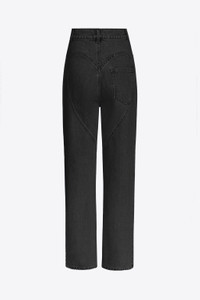 Denim jean with embellished heart cut-out, right pocket trim. Features denim zipper-fly closure at center front and heart patch at rear. Designed with straight leg and mid-rise for a relaxed fit. If in between sizes, we recommend you size down. Available in Black & Light Blue. - Made in Italy - 100% Cotton - Dry Clean Only - Runs true to size.