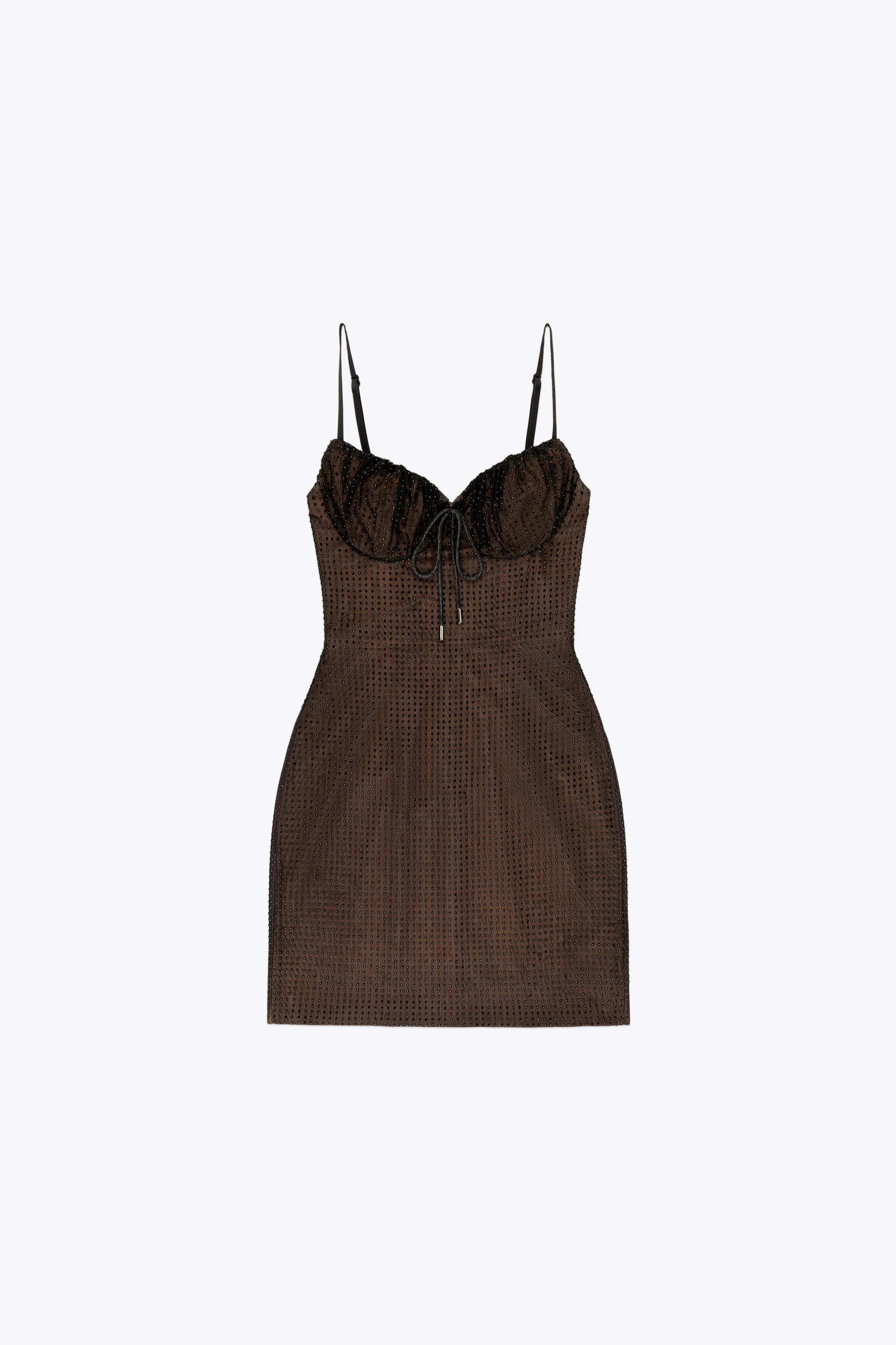Crystal Hotfix Mini Dress. Available in Black and Sky Blue. - 92% Polyester, 8% Elastane