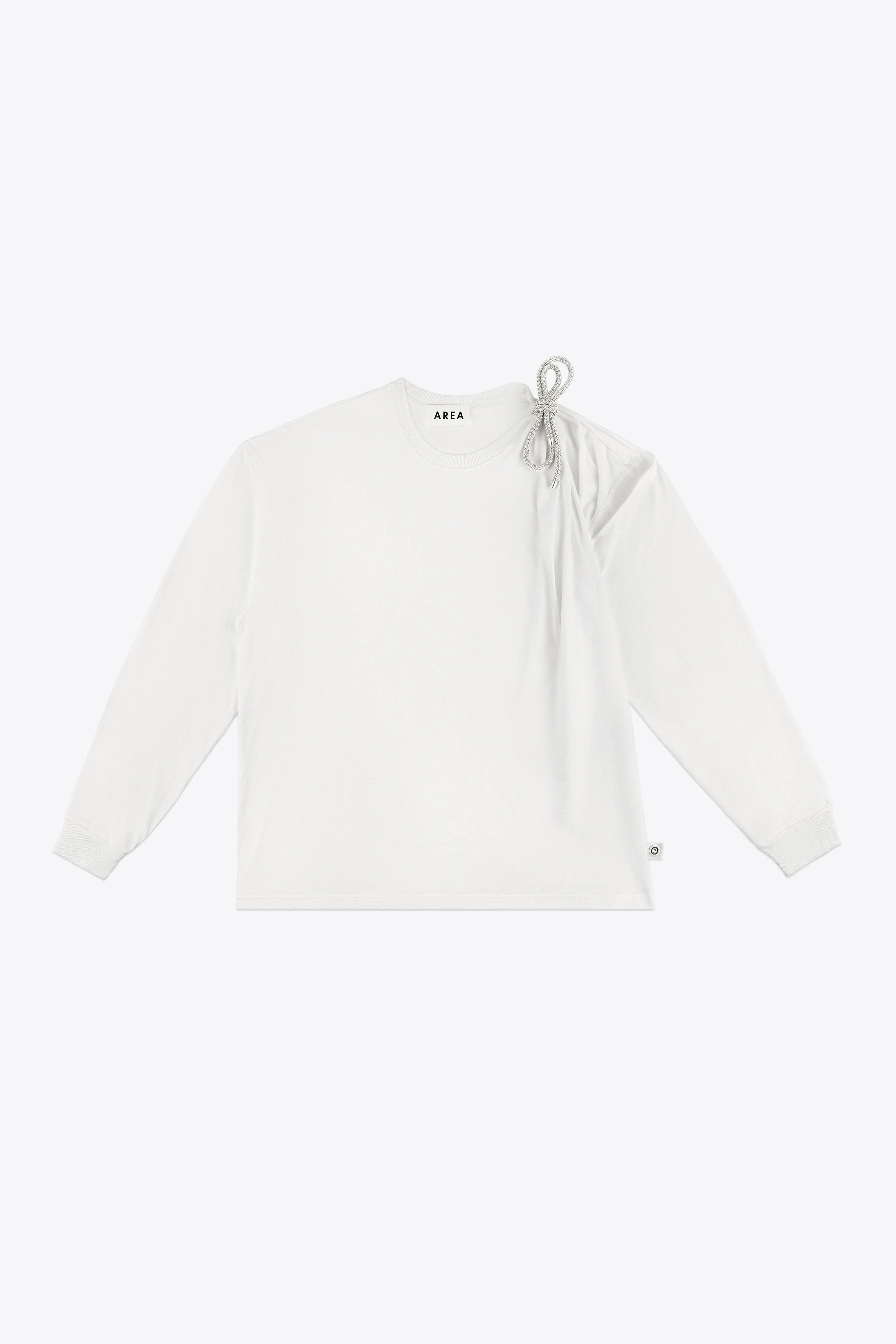 Long sleeve crewneck t-shirt with crystal rope knot detail. - 100% Cotton - Hand wash cold - Model is 5'11" and wears a size S