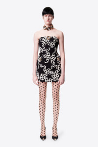 CRYSTAL MEDALLION STRAPLESS MINI DRESS