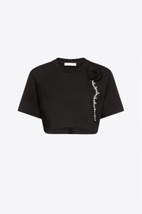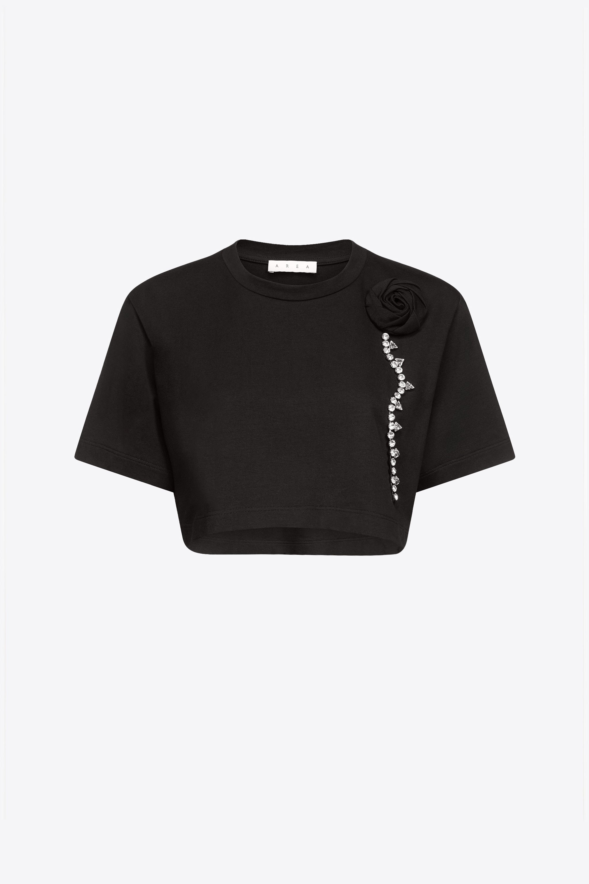 CRYSTAL ROSETTE CROPPED T-SHIRT