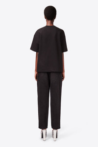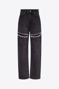 Classic denim jeans feature crystal cupchain trim slits at thighs. Available in Powder Pink. - 100% Cotton - Dry Clean Only - Model is 5'11" and wears a size 26