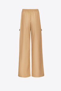 Nylon crystal trim track pant with 'AREA' crystal nameplate. Features front slit zip and side pockets. Available in Camel. - Made in Italy - 100% Nylon - Dry Clean Only - Model is 5'10.5" and wears a size S