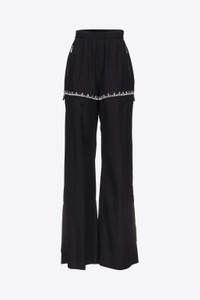 Nylon crystal trim track pant featuring front slit zip with 'A' logo tabs. Available in Black. - 100% Nylon - Dry Clean Only - Model is 5'10" and wears a size S