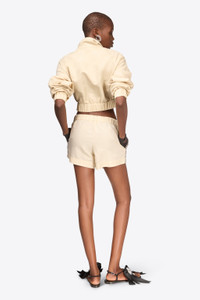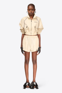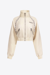 Crystal trim track jacket featuring AREA logo and zip closure side pockets. Available in Cream White & Black. - 100% Nylon - Dry Clean Only - Model is 5'11.5" and wears a size S