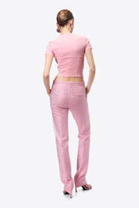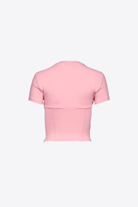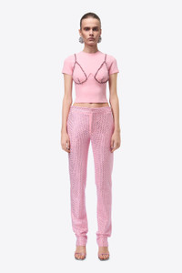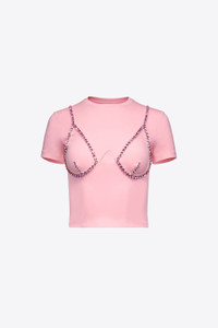 Compact ponte jersey t-shirt featuring crystal cupchain trim, underwire, and invisible side seam zipper. Available in Candy Rose & Black. - 67% Rayon, 28% Nylon, 5% Spandex; Rib: 86% Polyester, 12% Polyamide - Model is 5'10 and wears a size XS - Dry clean only