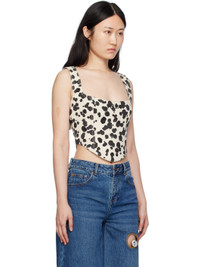 Corset top of jacquard denim featuring Dalmatian artwork and crystal embellishment throughout. 'AREA' crystal nameplate at front, adjustable straps and exposed zip closure at rear. Available in Black/Off White. - 100% Cotton - Dry Clean Only - Model is 5'9" and wears a size US 2