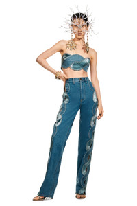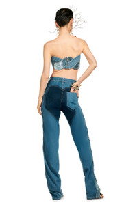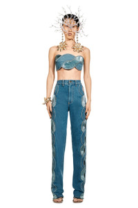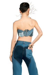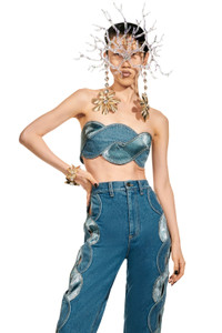 Lame denim rope bandeau. Available in Light Blue. - Made in Turkey - 44% Cotton, 31% Polyamide, 21% Polyester, 4% Elastane - Dry Clean Only - Model is 5'10" and wears a size US 2