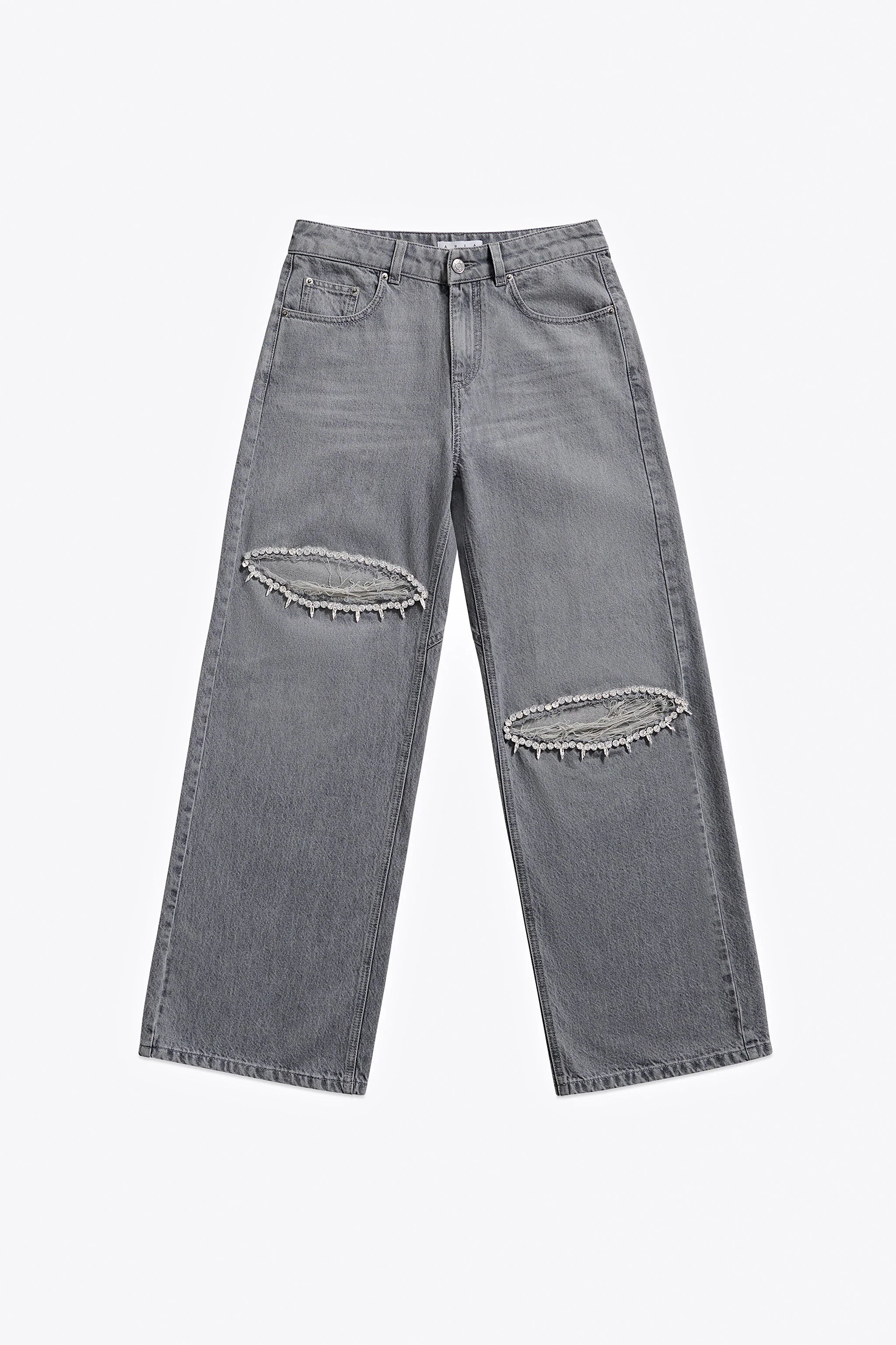 DISTRESSED CRYSTAL RELAXED SLIT JEAN