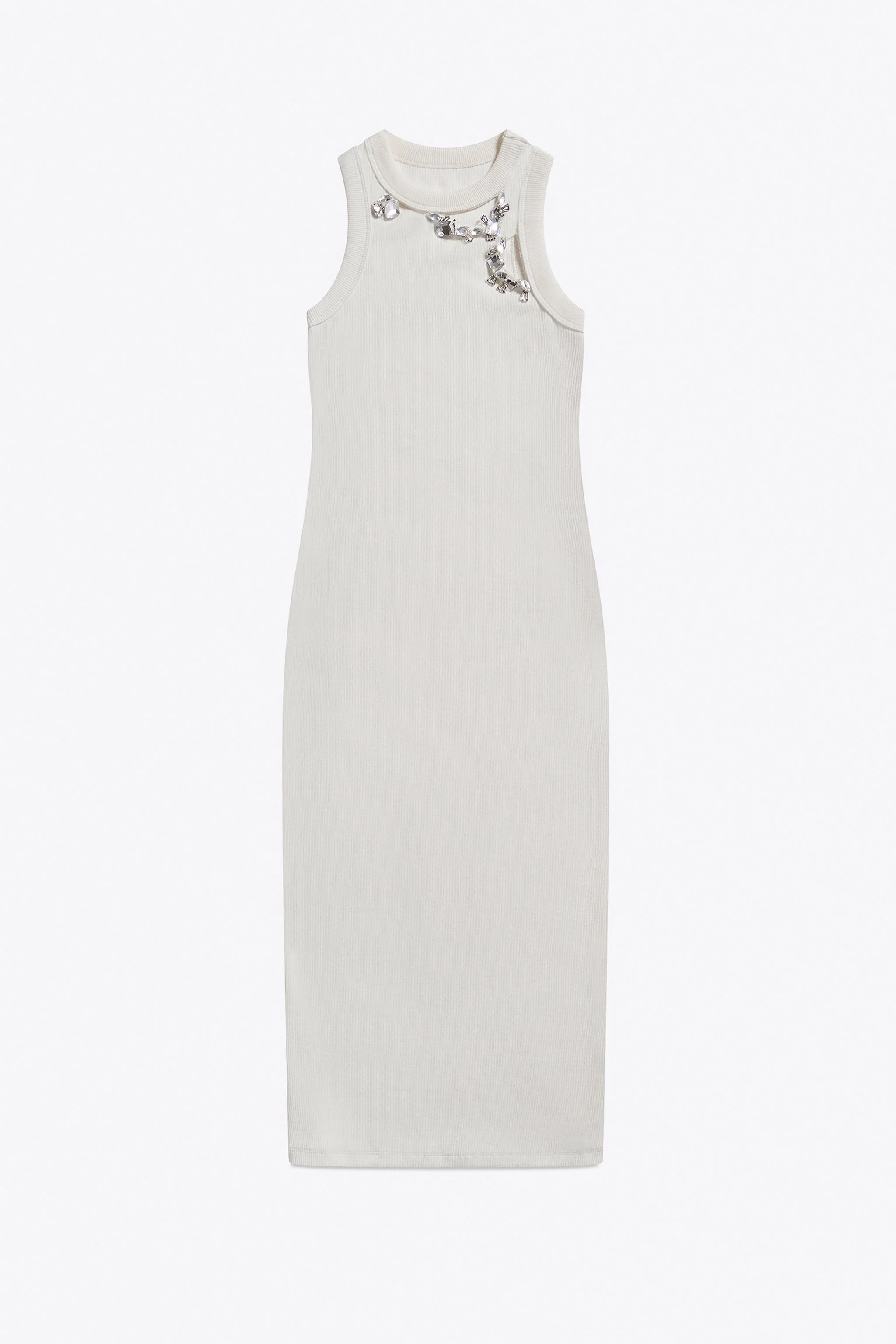 DISTRESSED CRYSTAL RIBBED KNIT MIDI TANK DRESS