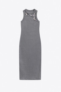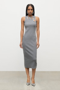 DISTRESSED CRYSTAL RIBBED KNIT MIDI TANK DRESS