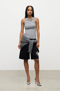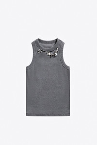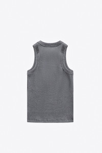 DISTRESSED CRYSTAL RIBBED KNIT TANK TOP