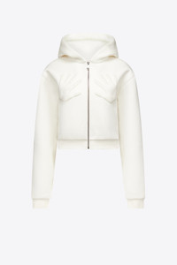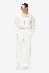 Scuba hoodie featuring embossed handprint at chest and front zipper. Available in Off White. - Made in Italy - 100% Cotton - Dry Clean Only - Model is 5'9.5" and wears a size S